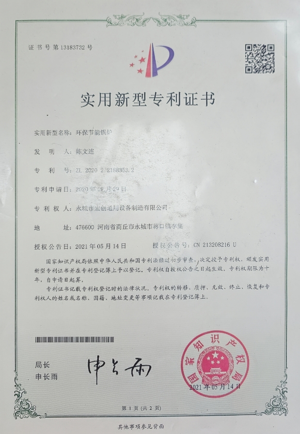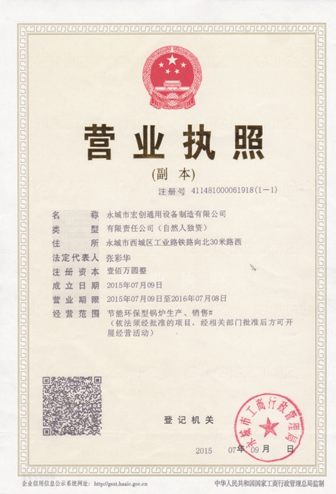 永城市宏创通用设备制造有限公司注册商标名称,我们公司是一家专业锅炉制造厂家,从事锅炉行业已达三十年之久,拥有中华人民共和国知识产权局发放的发明专利、实用新型专利等多项证书,已由中国制造转为创造。公司巨资引进现代化数字切割等先进设备,拥有强大的研发团队,完善的售后服务。致力于养殖业、种植业、垃圾焚烧、烘干业以及中小企业的室内环境温度解决方案。我们根据客户需求,提供优质的解决方案和服务,定制出简、节能、高效、全、环保型产品,所产品畅销全国,深受广大用户好评。我们杰着以客户三个满意:“产品质量的满意、先进技术的满意、售后服务的满意”为基本原则,"不断加强企业内部的综合竞争力,公司在竞争中求发展,在挑战中谋机遇。勤劳和真诚的我们愿与您携手并进、共创辉煌!